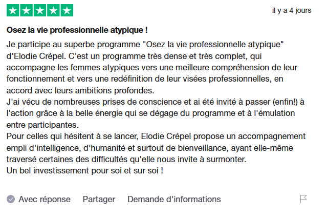 ✅ Une expertise reconnue dans les atypies et la transition professionnelle.